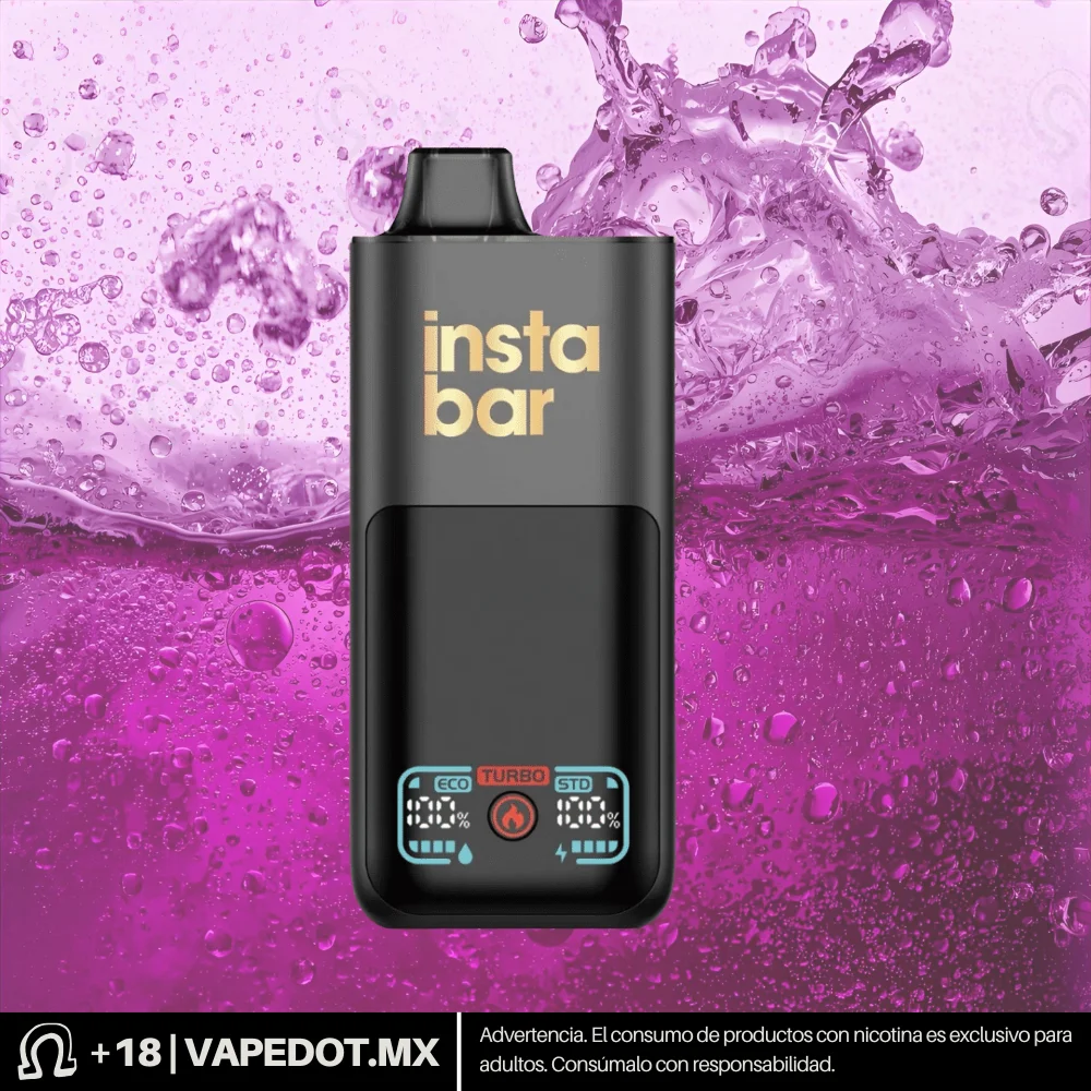 Instabar BE 70K ofrece su versión 70,000 puffs con capacidad de 30mL de e-liquid, batería recargable de 1200mAh y sistema de activación por inhalación, ideal para quienes buscan duración extrema, sabor consistente y diseño ergonómico portátil.