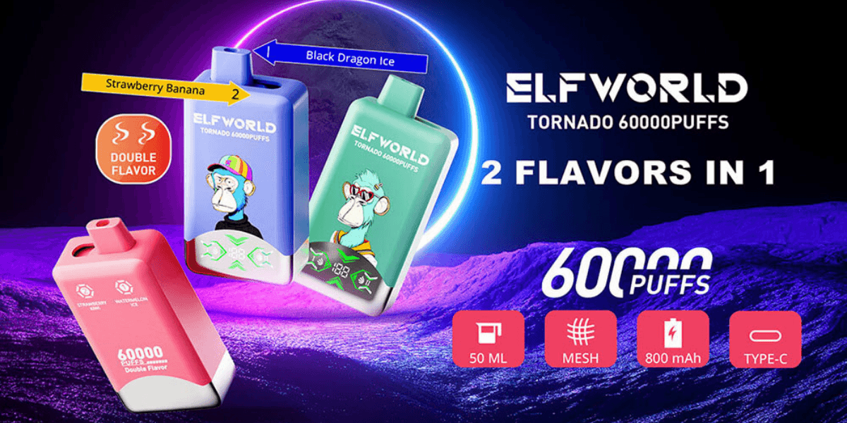 $850.00Elfworld Tornado Double Flavor: Fizzy Cherry Ice + Strawberry Mango 60,000 Puff